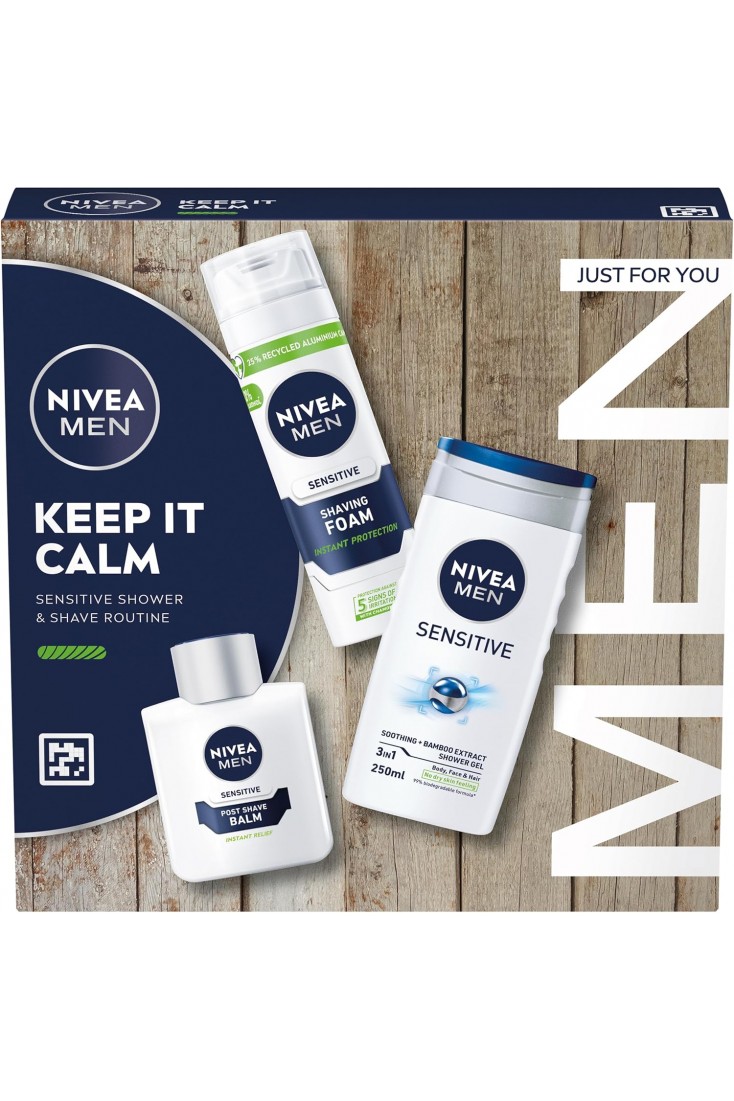 • POST SHAVE BALM – The men's gift set features NIVEA MEN Sensitive Post Shave Balm 100 ml. Fast-absorbing and alcohol-free*, it’s powered by Vitamin PRO Complex to keep skin healthy-looking and soothed